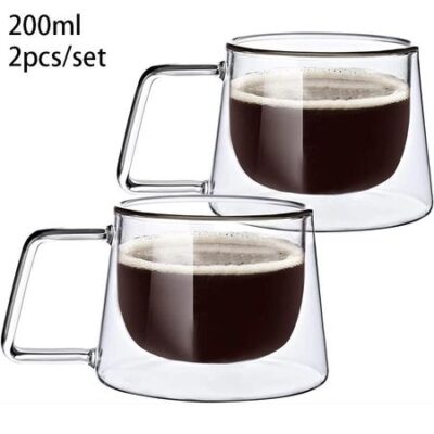 Стеклянная кофейная кружка с двойными стенками, 200 мл, термостойкая чашка для эспрессо, термоизолированная чашка для латте, капучино, чайная посуда для воды 200-220ml