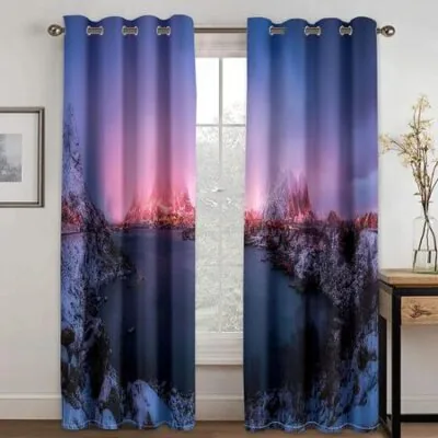 Стиль отпуска Высокое затемнение Шторы Эгейское море Остров Санторини Пляжные затемняющие шторы для спальни Гостиная Окно отеля W55 X H120cm X 2Grommet Top
