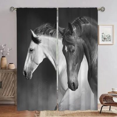 Главная » Все для дома Стильные черно-белые шторы с рисунком лошади для детской спальни, гостиной, ванной комнаты, кухни, двери, зала, домашнего декора 50W160H(CM)x2PanelGrommet Top Просмотров 1 Versatile Home Furnishing