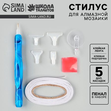 Стилус для алмазной мозаики, 5 насадок, клеевая подушечка