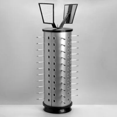 Стойка для очков вращающаяся, 44 места с зеркалом, 38×38×68 см, цвет серебристый Эта вращающаяся стойка для очков с 44 местами и встроенным зеркалом — идеальное решение для торговых точек. Габариты 38×38×68 см и элегантный серебристый цвет делают её стильным дополнением к вашему пространству. Благодаря вращающемуся механизму, покупатели легко могут просмотреть всю коллекцию очков. Встроенное зеркало добавляет удобства при примерке. Отличное сочетание стиля и функциональности.