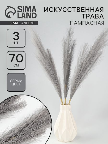 Сухоцветы искусственные «Пампасная трава», 70 см, 3 шт., серый