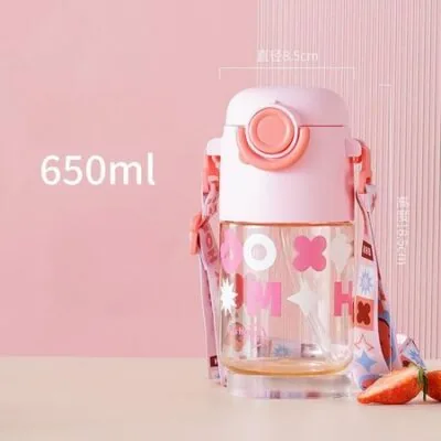 Супер милые красивые детские чашки, студенческая чашка с ремешком и соломой, портативный чайник большой емкости для мужчин и женщин с прыгающей крышкой 650ml