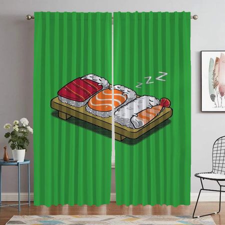 Sushi Anti-mosquito Curtains for Living Room Window Curtain Halloween Decoration Shades Tulle for Bedroom Home Interior Curtains W60xH90cmx2pcs-CL
