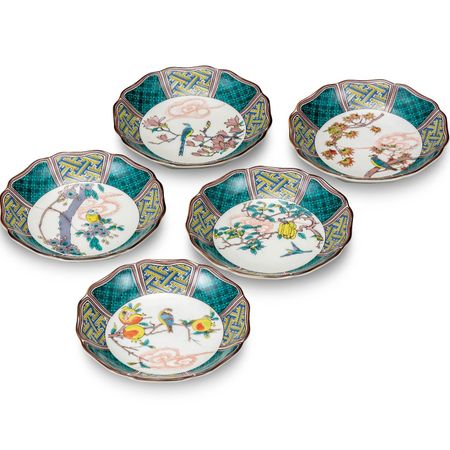Тарелка Стильный Кутани Маленький набор цветов и птиц Японский сервировочный набор Сделано в Японии, Посуда, Тарелки, 5, Картины, Керамика, Посуда, Тарелка,