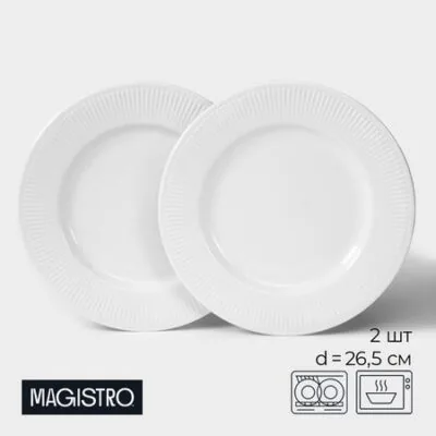 Тарелки Magistro Edne, 26.5×26.5×2.3 см, набор 2 шт., фарфор, белые