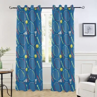 Теннисные шторы на окна, спортивные игры, затемняющие шторы для детей, подростков, мальчиков, девочек, зеленые мячи, оконные украшения, декор, 2 панели W55 X H120cm X 2Grommet Top