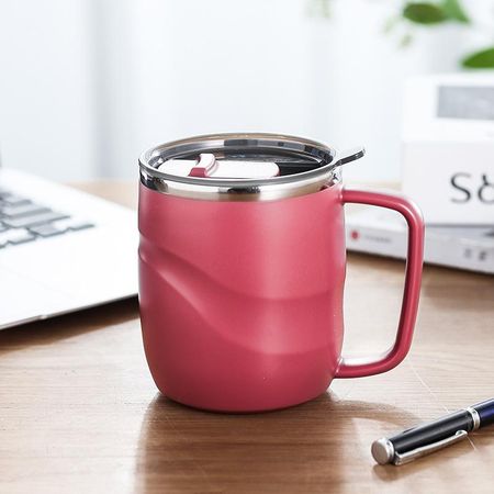 Термокружка, пивные чашки из нержавеющей стали, простая офисная бутылка для чая, кофе, воды, вакуумная с крышкой, практичная портативная посуда для напитков красный