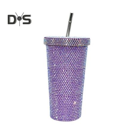Термокружка со стразами из нержавеющей стали, термостакан с крышкой и соломинкой, бутылка для воды со сверкающими стразами, подарок на День святого Валентина 500ML фиолетовый