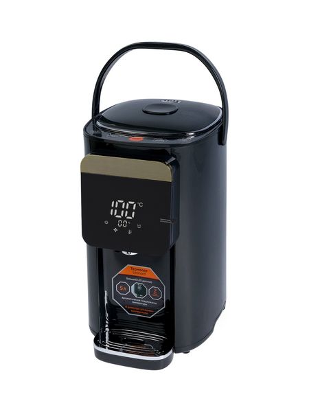 видеоТермопот объёмом 5 л с мощностью 1 200 Вт и сенсорной панелью управления предлагает простой и комфортный доступ к горячей воде — в любое время и без лишних усилий. Чёрный корпус подчёркивает современный дизайн, а электронный дисплей позволяет задавать и отслеживать температуру.Благодаря выбору из 8 режимов и функции автоматического поддержания температуры прибор адаптируется под любой напиток: от чая до крепкого кофе. Защита от запуска без воды и система защиты от перегрева обеспечивают безопасность при ежедневном использовании.