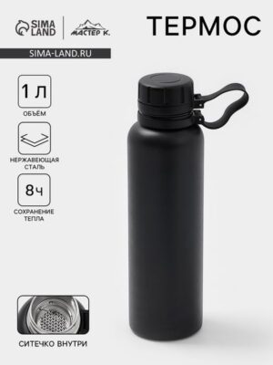 Термос с ситечком и объёмом 1 л — это выбор тех, кто пьёт напитки по-настоящему: с ароматом, вкусом и без компромиссов. Он сохраняет тепло до 8 часов и сразу фильтрует заварку — никаких переливаний и лишних ёмкостей.Особенности:Ситечко — не аксессуар, а функция: мелкоячеистая вставка удерживает чайные листья, травы или кофейную гущу прямо в горлышке. Напиток наливается чистым, а заварка остаётся внутри — можно пить до последней капли, не опасаясь осадка.Тепло надолго: вакуумная колба из нержавеющей стали сохраняет температуру до 8 часов.Компактность и мобильность: объём 1 литр — достаточно для нескольких порций, но не громоздко в сумке. Подвес на корпусе позволяет закрепить термос на рюкзаке или ремне — удобно в походе, на рыбалке или в дороге.Практичный и сдержанно стильный: чёрный корпус из нержавеющей стали не пачкается, не выгорает и не требует особого ухода.Термос подойдёт любителям чая и кофе, путешественникам и тем, кто ценит порядок даже в мелочах.