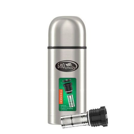 Термос российской марки Biostal (Биосталь) Охота (0,5 литра) 2 чашки с ситечком — стальной является универсальным устройством, предназначенным для сохранения начальной температуры напитков. Классическая конструкция модели обеспечивает сбережение тепла и холода в течение суток. Резервуар имеет пробку, изготовленную в формате чашки.