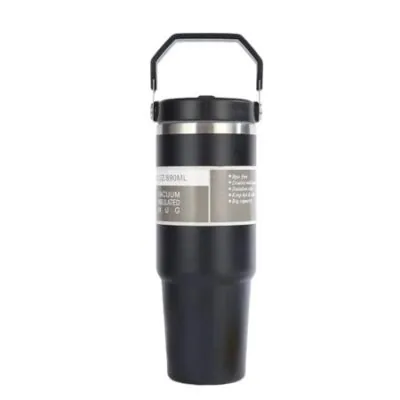 Термос из нержавеющей стали с соломинкой и ручкой, портативная автомобильная кружка, с двойными стенками, дорожная, спортивная бутылка для воды, вакуумная колба для кофе 890ml чёрный