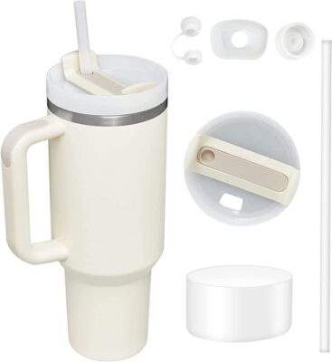 Термос MOTONOYA 40 унций с холодной изоляцией, пыленепроницаемый, герметичный, из нержавеющей стали, с трубочкой и крышкой, 1200 мл, большая емкость, вакуумная изоляция, дорожная кружка кремовый