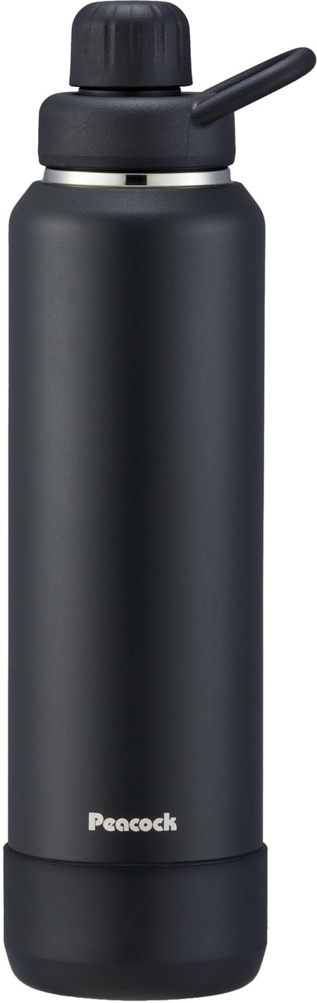 Термос Peacock, промышленный, бутылка для воды Peacock, газированная, совместимая, черная, для холодного хранения, прямого питья, спортивный термос с ручкой B (Павлин) 1,2 л чёрный