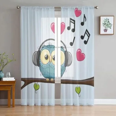Тюль с изображением кролика, сердца, цветка, мультфильма, милого животного, прозрачные шторы для гостиной, спальни, кухни, вуаль, органза, шторы W135 x H115cm x1Grommet Top