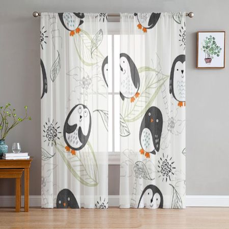 Тюль с рисунком пингвина, прозрачные оконные шторы для гостиной, спальни, современные шифоновые вуали, органза, шторы, декоративные занавески 135W x 114H(cm)