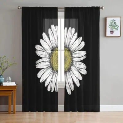 Тюлевая занавеска с изображением маргаритки на черном фоне для домашнего офиса, декор окна, спальни, кухни, балкона, современная прозрачная занавеска 135W x 114H(cm)