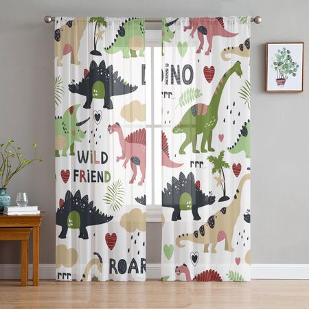 Тюлевые оконные шторы с мультяшными животными и листьями динозавра, прозрачная вуаль из органзы для гостиной, занавеска для спальни, кухни, домашний декор, драпировка W135 x H115cm x1