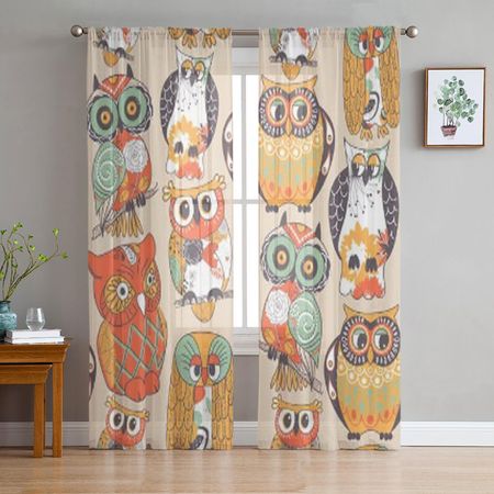 Тюлевые прозрачные оконные шторы с изображением совы для гостиной, спальни, современная шифоновая вуаль, занавески из органзы, декор, шторы 135W x 114H(cm)