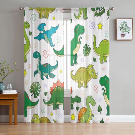 Тюлевые прозрачные оконные шторы с мультяшными животными и динозаврами для гостиной, спальни, современные шифоновые вуали, тканевые шторы 135W x 114H(cm)