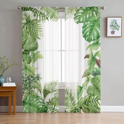 Главная » Все для дома Тюлевые прозрачные оконные шторы с тропическими зелеными листьями для гостиной, спальни, современные шифоновые вуали, тканевые шторы 135W x 114H(cm) Просмотров 7 Yifulin