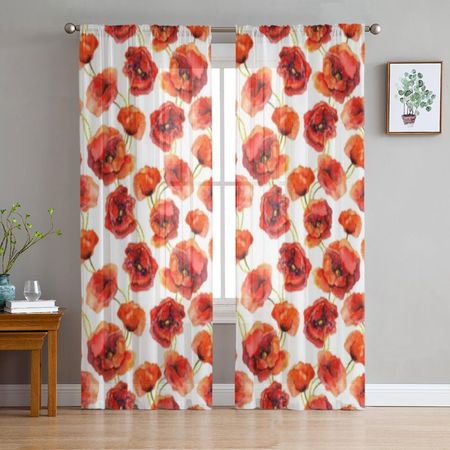 Тюлевые прозрачные шторы с цветочным растением и маком для украшения гостиной, занавески для комнаты, спальни, кухни, вуаль, занавески из органзы 135W x 114H(cm)