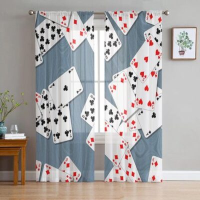 Тюлевые шторы для деревянного стола с игральными картами для спальни, зала, декора гостиной, шифоновые занавески для балкона, кухни, домашние шторы 135W x 114H(cm)