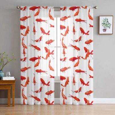 Тюлевые шторы с геометрическим рисунком карпа и рыбы для гостиной, прозрачные занавески для спальни, вуаль, декоративные украшения для окон 135W x 114H(cm)