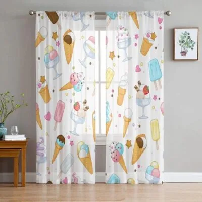 Тюлевые шторы с изображением мороженого и еды для спальни, зала, гостиной, декор, шифоновые занавески для балкона, кухни, домашние шторы 135W x 114H(cm)