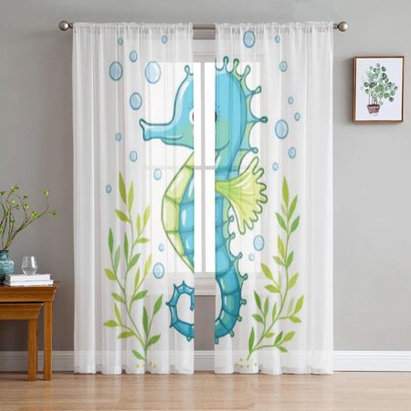 Главная » Все для дома Тюлевые шторы с милым мультяшным морским коньком для украшения гостиной, современная вуаль, шифоновые шторы для спальни, прозрачная вуаль 135W x 114H(cm) Просмотров 1 Yifulin