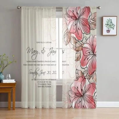 Тюлевые шторы с открыткой и лепестками роз для гостиной, спальни, прозрачные занавески для балкона, зала, модные домашние шторы с принтом 135W x 114H(cm)