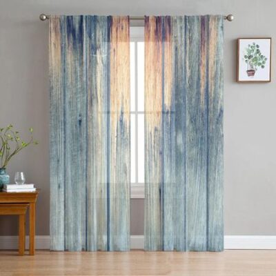 Тюлевые шторы с текстурой дерева для гостиной, прозрачная вуаль с принтом, занавеска для спальни, оконные шторы, жалюзи, домашний декор W135 x H245cm x2Rod Pocket