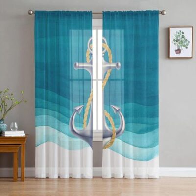 Главная » Все для дома Тюлевые занавески с градиентом океана и якорем, бирюзовые прозрачные шторы для гостиной, спальни, кухни, вуаль, шторы, жалюзи, панели 135W x 114H(cm) Просмотров 12 Yifulin