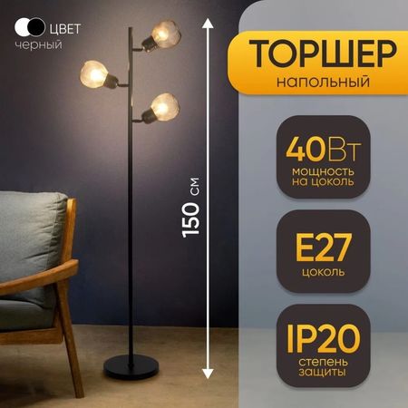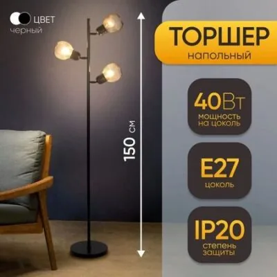 Создайте атмосферу индустриального шика в интерьере. Торшер в стиле лофт «Эдиссон» — это напольный светильник с тремя плафонами, выполненный в духе старинных заводских цехов. Его строгий дизайн и функциональность делают его ключевым элементом для современных гостиных, спален и кабинетов.Аутентичный лофт-дизайн: Три металлических плафона чёрного цвета на изящных держателях повторяют эстетику Эдисона. Такой светильник становится акцентной деталью, придающей помещению характер и индивидуальность.Гибкость в освещении: Три патрона стандарта E27 дают возможность создать сценарий освещения под разные задачи. Используйте лампы накаливания с видимой нитью для тёплого винтажного света или современные светодиодные аналоги для экономии энергии.Прочная и устойчивая конструкция: Основание и плафоны изготовлены из металла. Узкая прямоугольная подставка обеспечивает устойчивость, не занимая при этом много места. Общая высота в 150 сантиметров позволяет эффективно освещать зоны для чтения и отдыха.Удобное управление: Светильник включается и выключается с помощью выключателя на шнуре. Это практичное решение для тех, кто предпочитает простоту и не хочет каждый раз тянуться к розетке.Где будет уместен этот торшер: Чёрный трёхрожковый торшер гармонично впишется в просторную гостиную, добавит уюта в спальню, станет яркой деталью в интерьере кухни или прихожей. Его сдержанная палитра и чёткие геометрические формы хорошо сочетаются с кирпичной кладкой, бетонными поверхностями и деревом. «Эдиссон» — это не просто источник света, а готовое стилевое решение для ценителей индустриального дизайна.