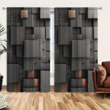 2 шт. 3D черная прямоугольная формационная напечатанная штора для домашнего декора — Карманная оконная отделка для спальни, офиса, кухни 52.5cmX116cm X 2pcs