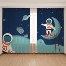 Мультфильм Космическая Ракета Космос Астронавт Детская Комната Мальчик Спальня Эркер Высокое Затенение Мода Различные Цветовые Узоры 2Панели W55 X H120cm X 2Grommet Top