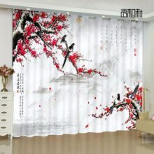 Изготовленные на заказ китайские шторы cortinas, прозрачная ткань для штор с изображением пейзажа, цветов и птиц, цветущей сливы, для спальни, гостиной, 2 панели 140W160H(CM)55x63inRod Pocket