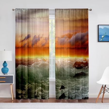 Главная » Все для дома Тропическая прозрачная вуаль занавеска экзотический закат над морским пейзажем кокосовая пальма оконный тюль занавески для гостиной спальни 1 PCS W100XH250cm&Rod Pocket Просмотров 10 Super Six