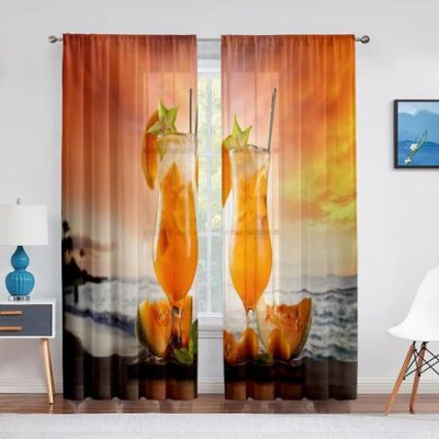 Тропический коктейль кокосовый крупный план пляжная прозрачная занавеска для гостиной с принтом тюлевая занавеска для окна роскошный домашний декор для балкона шторы 1 PCS W100XH250cm&Rod Pocket