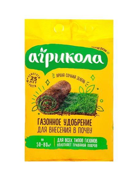 ИнструкцииСпособ применения: для создания долголетнего газона почва должна быть супесчаной. При наличии тяжелых почв на поверхность вносят слой песка толщиной 10-15 см. и тщательно перемешивают его с верхним слоем почвы. Поверхностный слой почвы обогащают удобрениями. Комплексные удобрения для газонов обеспечивают полноценное питание растений и характерную тёмно-зелёную окраску листьев.Оптимальный период закладки газона: ранняя осень. В средней полосе наиболее благоприятное время для посева газонных трав — август — сентябрь. Возможен посев трав и весной.Подготовка почвы: вносят удобрение для газонов из расчета 1 кг на 1 куб.м грунта и тщательно все перемешивают. Поверхность почвы выравнивают и слегка уплотняют.Посев семян: семена равномерно распределяют по поверхности, слегка присыпают землей, используя грабли. После посева почву слегка уплотняют (прикатывают).Уход в течение лета: скашивают траву обычно раз в неделю. После каждого второго скашивания разбрасывают удобрение для газонов из расчёта 2,5 кг на 50-80 кв.м, газона. После разбрасывания удобрений газон поливают.Весенний уход после таяния снега: очищают газон граблями от старых листьев. Для хорошего дружного отрастания трав весной подкармливают газон удобрением для газонов по 2.5 кг на 50-80 кв.м.ОписаниеNPK 13:19:17 + сера + хелаты железа и марганцаУсиливает насыщенный цвет травыЭкономичный расход