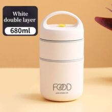 Двухъярусная подогревательница для каши, чашка для супа, вакуумный термос для ланча, термоизолированная сумка для ланча, нержавеющая сталь 304 White-Double Layer
