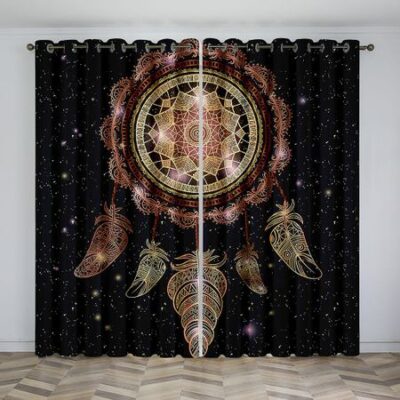 Узор Dreamnet Feather Узор с цифровой печатью Гостиная Главная комната декоративная занавеска 90г полиэстеровое волокно две панели W50xH130(CM)x2pcsGrommet Top темно-синий