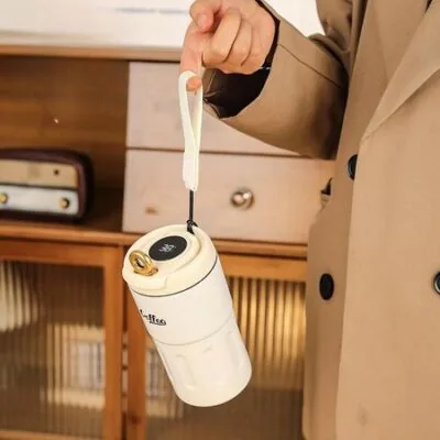 Вакуумная чашка из нержавеющей стали 316. Интеллектуальная чашка для измерения температуры. Портативная двухслойная вакуумная чашка с интеллектуальным дисплеем температуры. 500ml белый