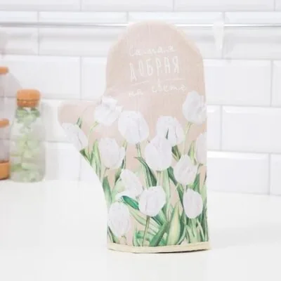Эта прихватка-варежка согревает руки и сердце. Плотный хлопковый ватин внутри надёжно защищает от жара, а мягкая ткань с рубчиком приятна на ощупь. Она создана, чтобы беречь ваши руки каждый день, превращая обычную готовку в момент заботы о себе.Почему эта прихватка — особеннаяУдобный формат варежки: плотно сидит на руке, не соскальзывает.Натуральный хлопок саржевого плетения дышит и впитывает влагу.Усиленный наполнитель из ватина (250 г/м²) — гарантия защиты от высокой температуры.Универсальный бежевый цвет и тематический рисунок к 8 Марта создают праздничное настроение.Подходит для использования в любой сезон на любой кухне.Простой уход: стирка при 30°C, запрет на отбеливание, бережная глажка.Забота в деталяхПлотность и многослойность материала — это уверенность при работе с горячими формами и противнями. Эргономичный размер 20×28 см рассчитан на удобный захват. Это не просто кухонный текстиль, а практичный помощник, который делает процесс готовки безопаснее и комфортнее. Идеальный вариант для подарка на весенний праздник или для обновления собственного кухонного арсенала.