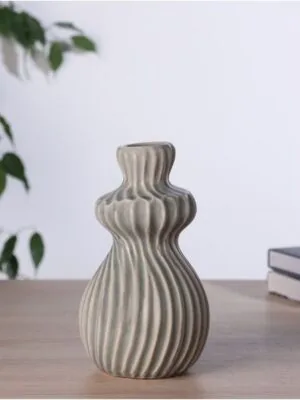 Настольная керамическая ваза серого цвета станет идеальным решением для создания стильного и оригинального декора. С её рельефной текстурой она привлекает внимание и придаёт пространству особый шарм.Главные характеристикиИзысканный дизайн: Высота 19 см делает вазу заметной, но не громоздкой, идеально подходящей для столов, полок и подоконников.Рельефная отделка: Уникальная текстура добавляет визуальный интерес и глубину, создавая эффектное сочетание с любыми цветами и стилями интерьера.Качество материалов: Изготовлена из прочной керамики, ваза обеспечивает долговечность и простоту в уходе, позволяя ей прекрасно сохранять свой внешний вид с течением времени.Универсальность использования: Прекрасно подходит для свежих цветов, сухих композиций или может использоваться как самостоятельный элемент декора.Почему стоит выбрать эту вазу?С её помощью вы сможете легко создать уютную атмосферу в вашем доме или офисе. Она станет отличным подарком для тех, кто ценит стиль и качество в интерьере.Готовы обновить своё пространство? Настольная ваза не просто украшение — это способ добавить индивидуальности вашему интерьеру. Не упустите шанс привнести элегантность и шарм в вашу жизнь!