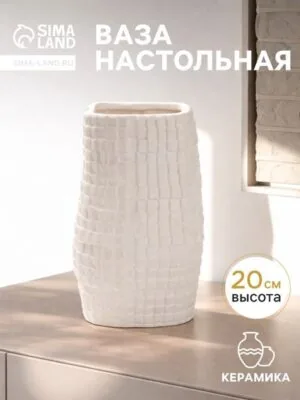 Эта белая керамическая ваза для стола — не просто сосуд для цветов, а законченный предмет интерьера. Её сдержанный цвет и тактильный рельеф поверхности создают выразительный акцент, не перегружая пространство. Ваза гармонично дополнит как минималистичный, так и классический декор, привнося ощущение умиротворённой цельности.Детали, которые имеют значениеКлассический белый цвет легко сочетается с любыми оттенками в интерьере.Умеренная высота идеальна для живых или сухоцветов с не длинными стеблями.Фактурная поверхность интересно играет со светом, добавляя глубину простой форме.Прочный керамический корпус устойчив и долговечен в использовании.Компактный размер позволяет разместить вазу на журнальном столике, обеденном столе или полке.Создайте свой уголок гармонииНаполните её свежими полевыми цветами для деревенского настроения, несколькими веточками эвкалипта для скандинавского лаконизма или сухостоями для вневременной эстетики. Рельеф на керамике приятно ощущается в руках, а её форма сохранит букет в собранном, изящном виде. Это выбор для тех, кто ценит в вещах тихую выразительность и натуральные материалы.