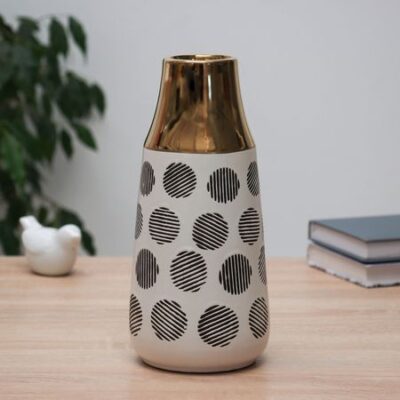 Изящная настольная ваза из белой керамики — превосходное решение для вашего интерьера. Элегантные рельефные узоры добавляют ей уникальности, делая ее главным украшением вашего стола. Высота вазочки составляет 25,5 см, а диаметр — 5 см, что позволяет ей легко стать как центром композиции, так и утонченным дополнением.Преимущества Универсальность: подходит для различных помещений: гостиной, спальни или офиса; Эргономичность: компактные размеры позволяют разместить ее в самых разных местах; Долговечность: качественная керамика устойчива к царапинам и воздействиям времени; Легкость ухода: простая в чистке, достаточно протереть влажной губкой;Эстетическая привлекательность: рельефное оформление добавляет изысканности и подходит к любому стилю интерьера;Стабильность: устойчивая конструкция предотвращает опрокидывание;Экономия: доступная цена без потери качества; Многофункциональность: можно использовать как отдельно, так и в композиции с другими вазами или декором. Эта ваза не только эстетически радует глаз, но и является надежным элементом вашего декора, который подчеркнет вашу индивидуальность. Откройте для себя простоту и изящество, которые делают ваш дом уютнее. Приобретайте экономичное и элегантное решение для вашего интерьера прямо сейчас.