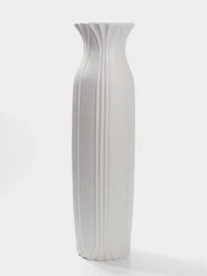 Строгая элегантность для вашего интерьера. Напольная ваза «Боливар» из белой керамики — это скульптурный акцент, который придает пространству характер и завершенность. Её выразительный рельеф и монументальная форма создают игру света и тени, оживляя даже самый лаконичный декор.Выразительный рельеф и форма: Поверхность вазы украшена интресным рельефом. Этот объемный рисунок не просто украшение — он делает объект тактильно приятным и динамичным даже в статике. Ваза становится самостоятельным арт-объектом, не требующим обилия цветов.Идеальные пропорции для напольного формата: Высота 61 см выбрана не случайно. Это оптимальный размер для размещения на полу у стены, в нише, рядом с диваном или лестницей. Ваза не теряется в пространстве, но и не выглядит громоздкой, гармонично вписываясь в вертикали комнаты.Универсальность белой керамики: Белый цвет — это чистый холст для вашего интерьера. Он подчеркивает фактуру материала и рельефа, сочетается с любыми цветовыми палитрами, от минимализма до бохо. Керамика дарит ощущение основательности и натуральности, сохраняя при этом современный вид.Практичность и устойчивость: Как напольный аксессуар, ваза обладает устойчивым основанием. Прочная керамика рассчитана на долгие годы службы. Её можно использовать для высоких сухоцветов, веток, зонтиков или оставить пустой — её эстетика самодостаточна.Завершающий штрих в дизайне: «Боливар» — это акцент, который расставляет точки над и. Она добавляет интерьеру текстуру, объем и архитектурную четкость. Эта ваза для тех, кто ценит не просто предметы, а средства выразительности. Позвольте ей стать тихой, но весомой нотой в симфонии вашего дома.