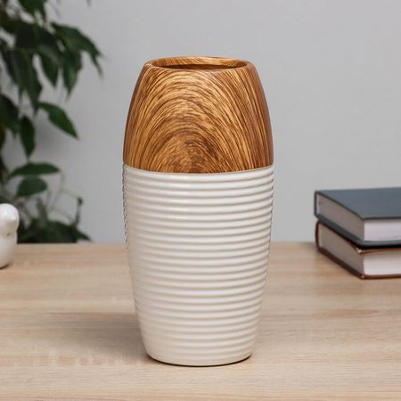 Ваза Теа, 8×8×20 см, керамика, белая, коричневая